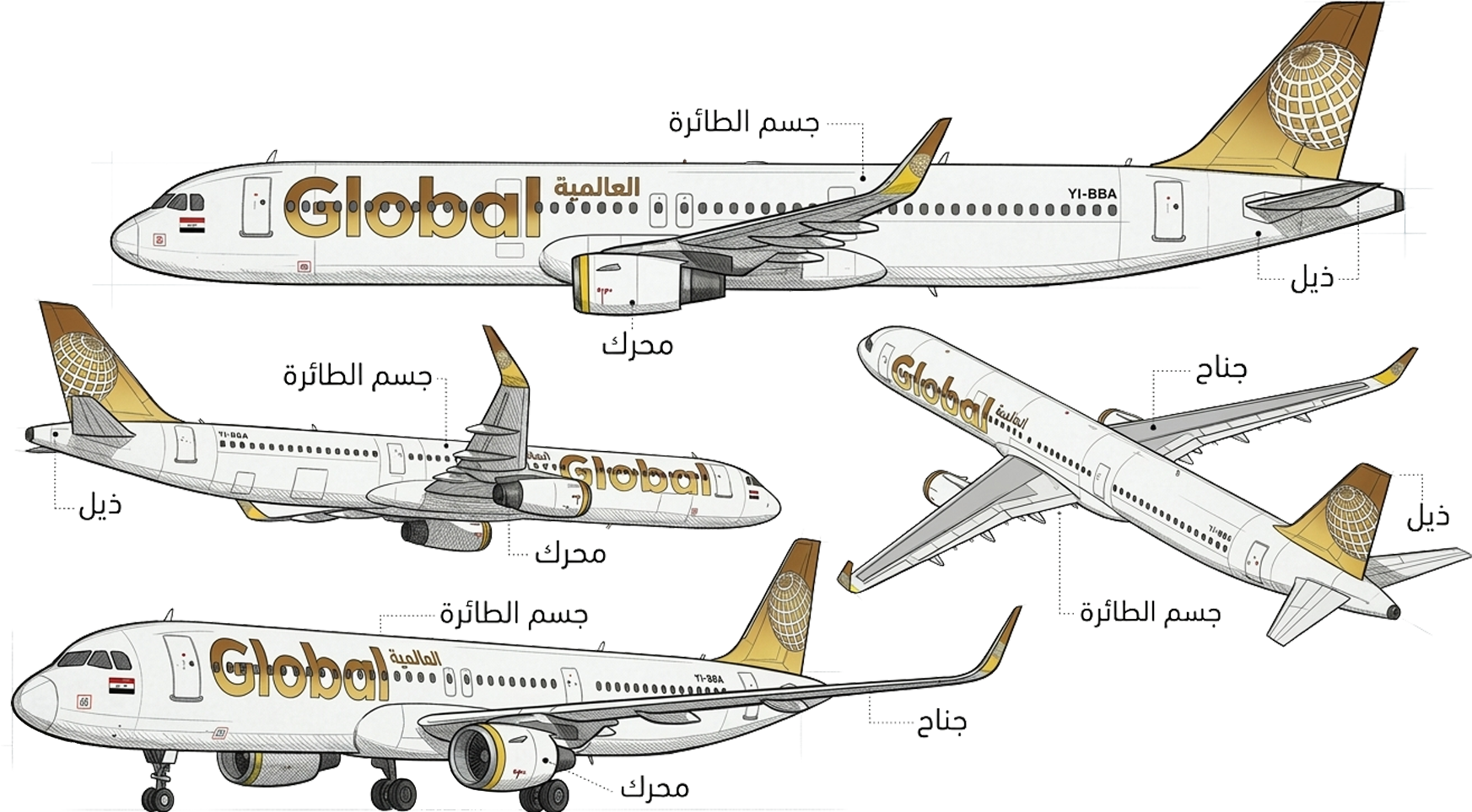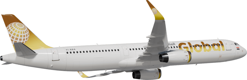 Global Aviation is a company that provides high-level services. With us, the travel experience is distinguished by punctuality and exceptional comfort and care for the passenger. Every journey embodies our commitment to delivering seamless service and refined hospitality. Global Aviation uses the latest safety systems and adheres to the highest international standards in the aviation industry. The main headquarters of Global Aviation is located in Baghdad, Iraq. Currently, Global Aviation owns a fleet of Airbus A321 aircraft, with plans to expand soon to include other aircraft types.